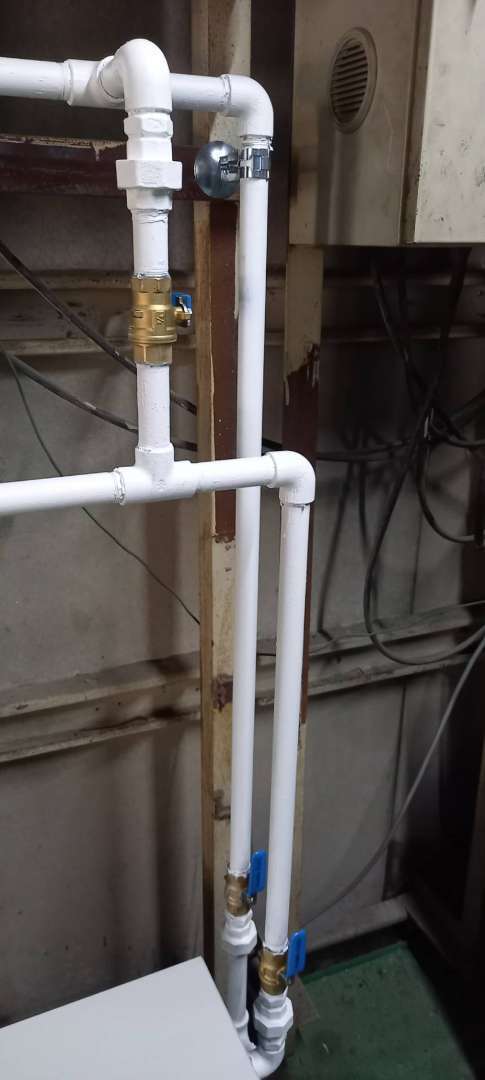 解決策として配管ルートを壁側に寄せて配管設置工事行うことで、